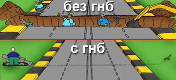 ГНБ применяют при прокладке трубопроводов, канализаций, водопроводов, газопроводов и футляров для кабелей связи без поверхностного вскрытия грунта, сохраняя природный ландшафт. Метод ГНБ применяется в условиях плотной городской застройки и при наличии препятствий, таких, как памятники культуры, истории, на территории действующих промышленных предприятий. Особенно актуален данный метод при прокладке коммуникаций через природоохранные зоны, где строительство категорически запрещается, в скалах, сыпучем грунте, вблизи от нефте- и газопроводов, под линиями электропередач. Строительство коммуникаций рядом с загруженными автомагистралями, в благоустроенных парках и скверах, современных жилых кварталах зачастую возможно только с помощью бестраншейных технологий. ГНБ под рекой, другими водоемами или линиями метрополитена также возможно, в то время как открытым способом выполнить такие работы не реально.